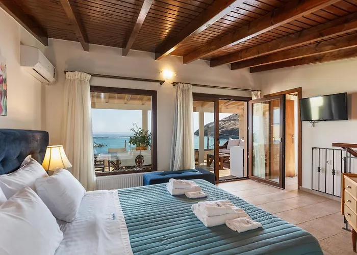 Das Stadtzentrum von Pánormos kann man innerhalb von 30 Minuten zu Fuß erreichen. Am 150 Meter entfernten Freizeit- Strand finden die Gäste Umkleidekabinen und Lounge-Sessel.